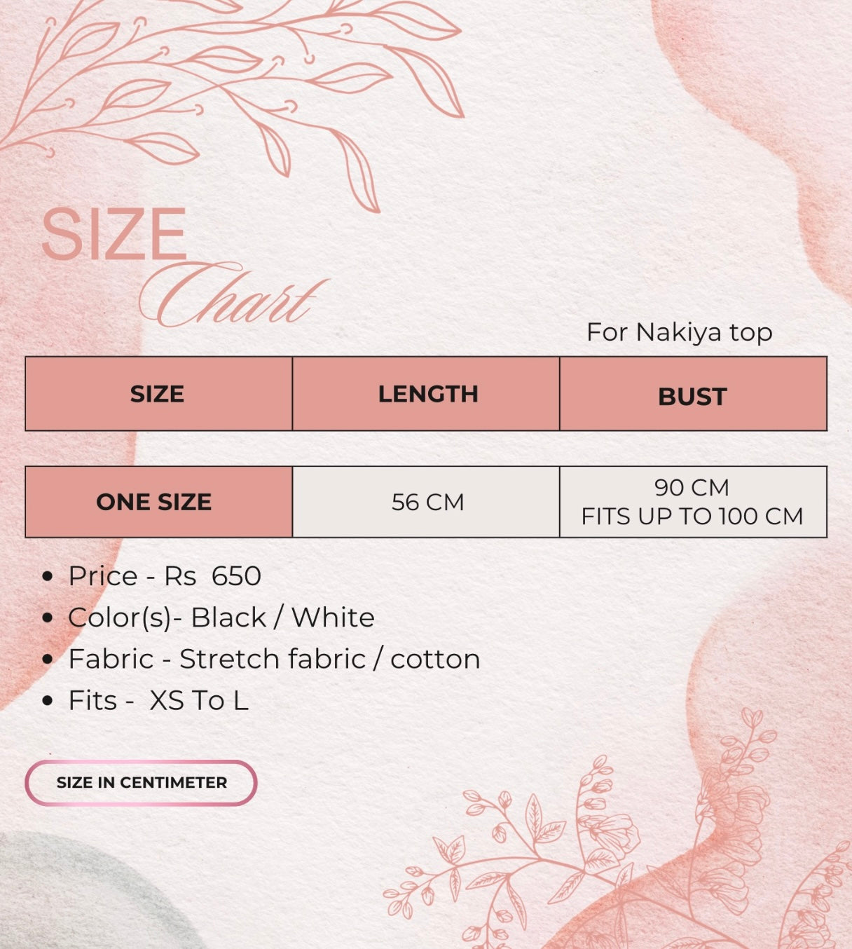 * Size: One size (Fits bust up to 100cm)
